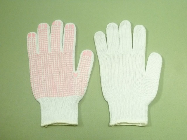 女性用すべり止め手袋です。 ピンクのボツボツがとてもかわいらしいです。 さわやかな使いごこちをお試し下さい。 手袋・・・ナイロン すべり止め・・・塩化ビニール
