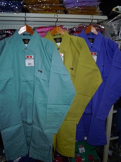 綿100%ですが少々光沢がありポリエステルに近い感じです。 生地的には薄めで夏に適しています。 廃番商品ですので現品限りとなります。 また実店舗でも取り扱っていますので売り切れの場合があります。 素材・・・綿100% カラー・・・11ムラサキ、17アースグリン、48カラシ サイズ・・・M,L,LL,3L 現在庫 11ムラサキ 完売しました 17アースグリーン L/1、LL/1 48カラシ M/1