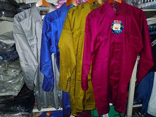 左よりグレー、淡ブルー、カラシ、ショッキングピンク |