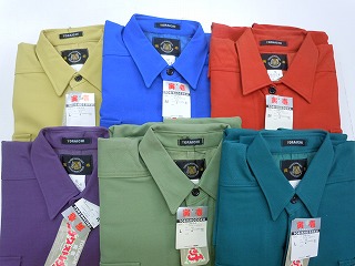 素材・・・ポリエステル90%、綿10% カラー・・・11 ムラサキ、18 若草、20 花紺、35 ダークグリーン、43 イエロー、53 レンガ (2530の色とは多少違います) サイズ・・・M、L、LL、3L
