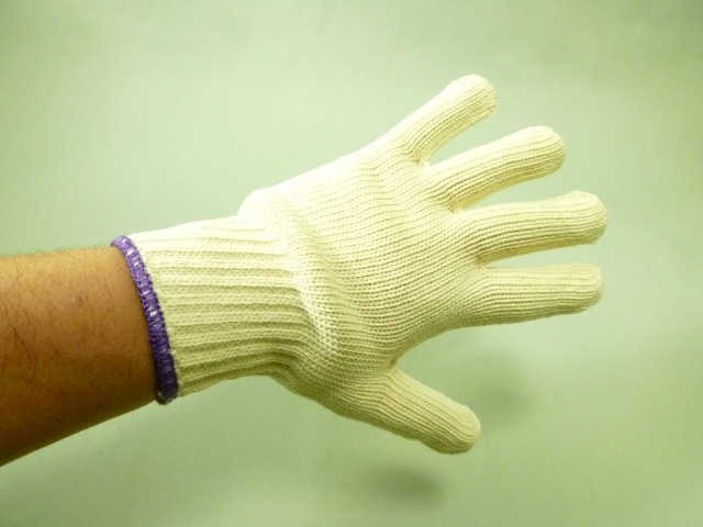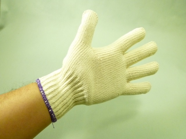 生産工程で発生する未利用綿、リサイクル綿からできた糸を使用した純綿軍手です。