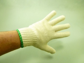 生産工程で発生する未利用綿、リサイクル綿からできた糸を使用した純綿軍手です。
