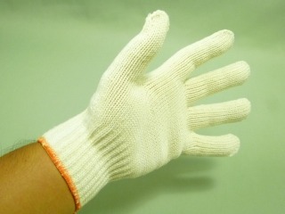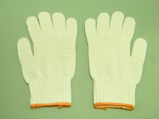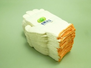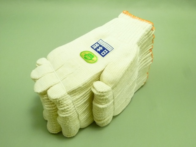 特紡糸2本編の中にアクリル糸を1本使用しているので、強力で長持ちします。 10ダース(120双) 5,500円(税込) 1ダースあたり 550円 8.5番の特紡糸2本と7.5番のウーリー糸2本 約690g/ダース 手首ロックの色・・・オレンジ色