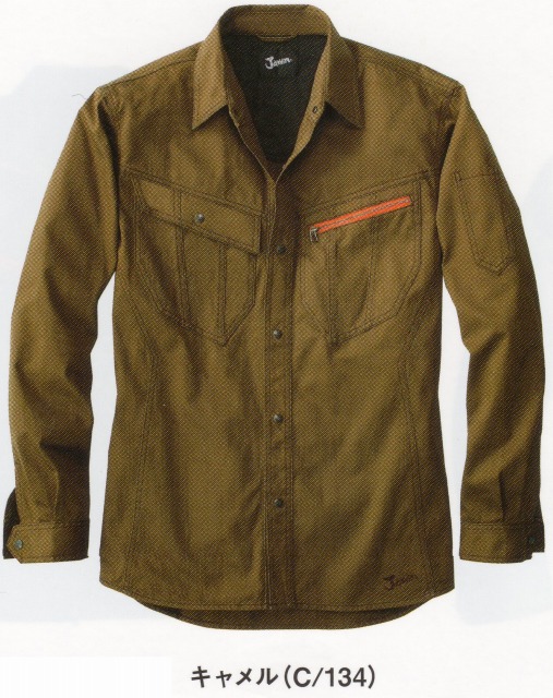 左胸ファスナーポケットのワンポイントカラーがおしゃれな長袖シャツです。
