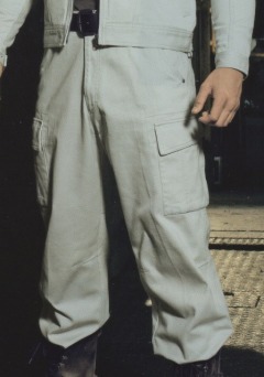 カジュアル感覚で着こなせるデニムテイストなノータックカーゴパンツ。