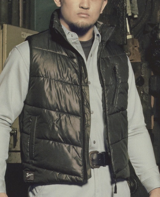 ワークウエアの上にも重ね着ができる防寒ベスト。
