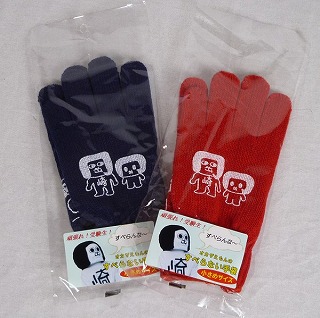 当店の所在地である岡崎市のゆるキャラ『オカザえもん』と当店の近くにある学問の神様『岩津天満宮』にちなんで『オカザえもんのすべらない手袋』を作成しました。