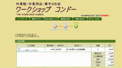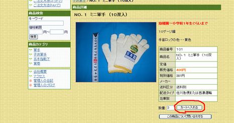 @【商品カテゴリ】をクリック、もしくは【商品検索】で購入したい商品を検索します。A【カテゴリ一覧】から購入したい商品のカテゴリをクリックします。B【商品一覧】から購入したい商品をクリックします。C購入した【数量】を入力し、【カートへ入れる】ボタンをクリックします。D【カートの中】の内容でよければ【注文画面へ進む】ボタンをクリックします。Eご注文情報をそれぞれ入力して【確認画面へ進む】ボタンをクリックします。Fご注文情報の内容を確認して、よければ【この内容で注文する】ボタンをクリックします。Gこれで注文完了です。ご注文いただきますと、お支払い金額、在庫確認の返事をFAXまたはメールにてお知らせ致します。