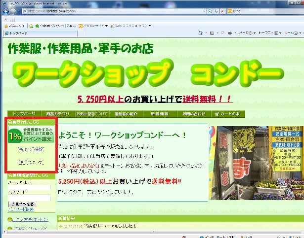 トップページ左上の会員情報確認欄にメールアドレスとパスワードを入力していただくことによって、会員情報を確認いただけます。会員情報の変更、退会、ポイント数の確認等が行えます。